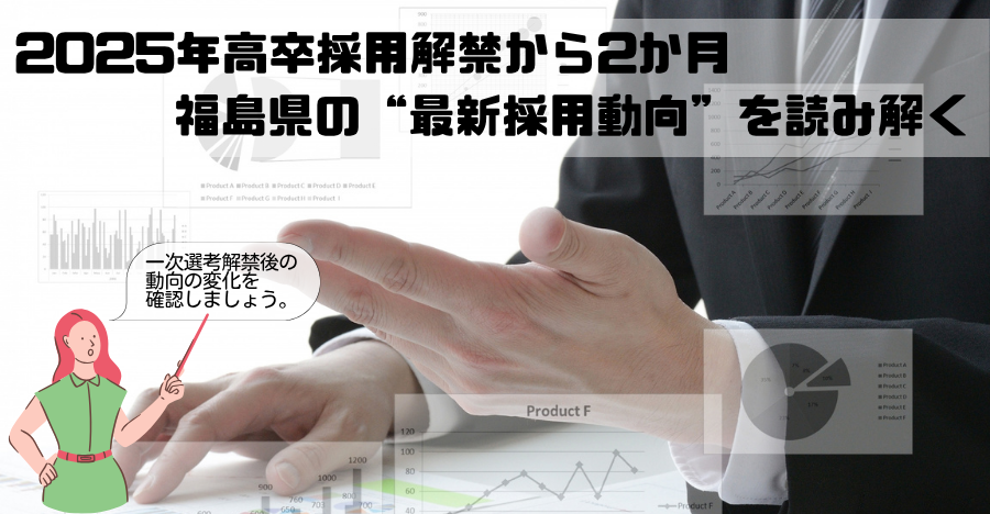 福島県の新卒高卒者採用は、求人倍率・内定率ともに高い水準で推移し採用意欲の高まりが続いています。一方で、求職者数の減少により企業間の人材獲得競争は激しさを増しており、早期の採用計画と柔軟な募集対応がこれまで以上に重要になっています。9月末時点でも約900人の生徒が未内定となっており、今後の二次募集や再マッチングの動きが期待されます。採用のタイミングを逃さず、地域の学校やハローワークとの連携を強化することが人材確保につながるポイントといえるでしょう。
